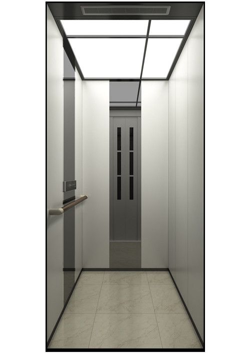 天井:YI-65+亞麻白彩紋鋼板HK02  后側(cè):亞麻白彩紋鋼板HK02+黑烤漆YS-01  左右:YI-65+YM-40  前側(cè)+轎門:YI-65+YM-40  扶手:鏡面、香檳金烤漆扶手HR-016  地板:PVC地板FL-P41
