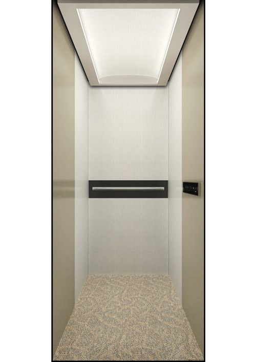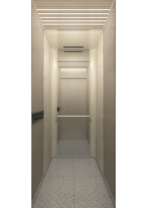 天井:全發(fā)光天井  前側(cè)板:抗指紋短絲發(fā)紋香檳金不銹鋼  門楣:抗指紋短絲發(fā)紋香檳金不銹鋼  兩側(cè):抗指紋短絲發(fā)紋香檳金不銹鋼+鏡面飾條  后側(cè)板:無(wú)邊框夾膠玻璃  轎門:抗指紋短絲發(fā)紋香檳金不銹鋼  操作盤:BC-T8A1  扶手:發(fā)紋鍍香檳金扶手  地板:大理石(黑白根+云多拉灰)