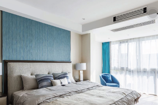 滿足臥室冷暖需求的同時(shí),配合回型吊頂靠外墻安裝,吊頂預(yù)留600mm深度即可
