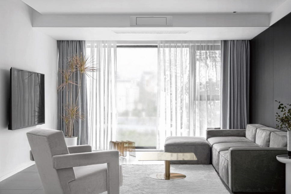 滿足臥室冷暖需求的同時,配合回型吊頂靠外墻安裝,吊頂預(yù)留600mm深度即可
